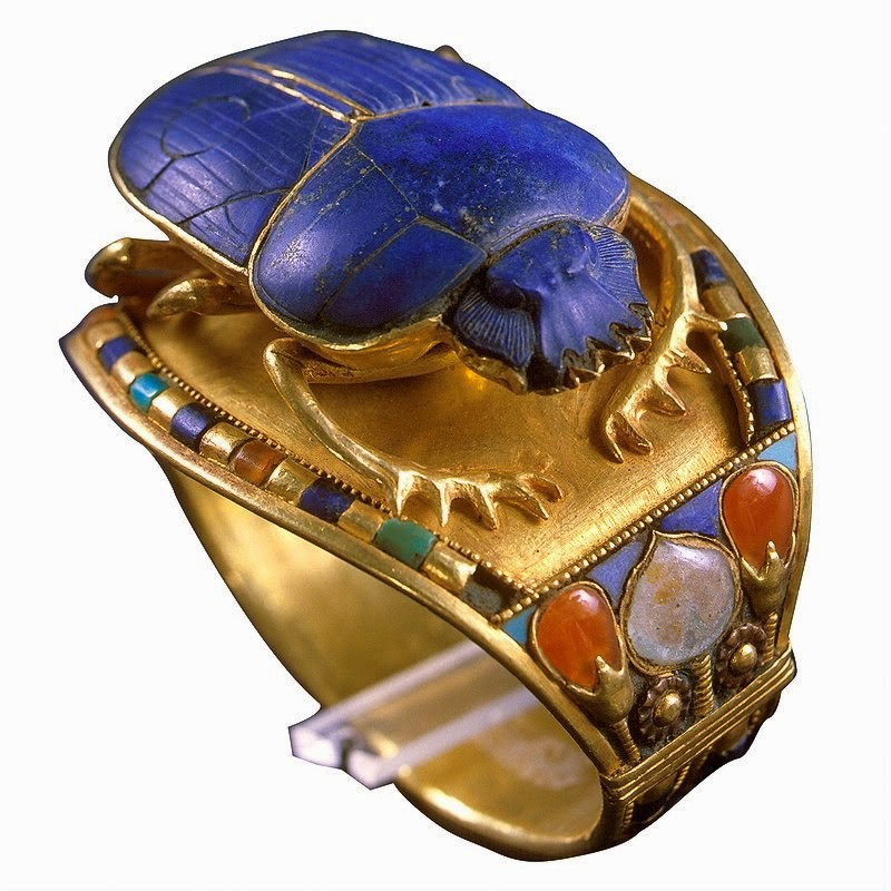 Soprattutto lo smalto “a cloisonné colato in alcune cellette formate da un reticolo. Il risultato finale di straordinaria bellezza potete facilmente immaginarlo. Per le gemme non possiamo non citare lo Smeraldo di cui anche la regina Cleopatra era una grande appassionata. Di grande uso erano anche i lapislazzuli, corniola, diaspro, turchese ceramica e paste vitree, quest’ultime create per sopperire alla mancanza di quelle naturali.
